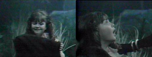 Barnabas tells Edward he thinks it wise to consider the matter carefully. I'm not doing this because Jamison ran away, says Edward--I refuse to be intimidated by anyone, least of all my own son, but he did seem overly concerned when we mentioned it to him. Edward invites Barnabas to dinner, but the latter leaves--he's seeing someone in town. Edward hears Nora crying, "No, no, please!" She runs into his arms. The fire! she cries--I could hear something inside it, could feel it trying to reach me. It's your imagination, says Edward--I'll take you in there and prove it to you. He has to drag the poor kid in. He insists she look into the fire--look! he demands. Nora screams, "My mother, I see her face, in the flames!"