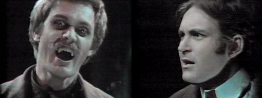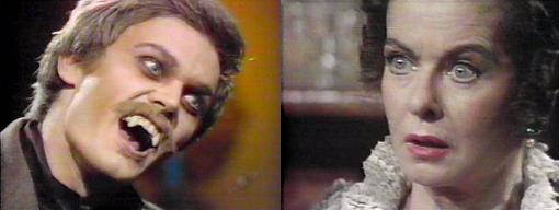 --I know almost nothing, but can make certain assumptions--a vampire's attack would result in a radical personality change in the victim, right? I suppose it does, answers Barn evasively. The victim, says Edward, would be similar to a walking dead person, responding only to the voice of the vampire itself--"Am I right, Barnabas? What are you getting at? Asks Barnabas. In answer, Edward throws open the double doors to reveal Judith standing there, the bites clearly visible on her throat. "Good evening, Barnabas," says Judith in a monotone. "Well, Edward, did you find out what you want to know?" asks Barnabas. "Yes," says Edward, chastened. He helps Judith into a chair and tells her to rest, then closes the double doors and faces Barnabas. What did you expected would happen when Judith saw me? asks Barnabas. I didn't know, admits Edward. She had no reaction whatever says Barnabas, so I am no longer under suspicion. No, says Edward, offering his apologies--it happened earlier this evening--Judith had gone to the Old House to see you. What for? asks Barn. I don't know, says Edward but Trask found her in this condition. And because it was at the Old House, you assumed I had something to do with it? asks Barn, calmly. We've all been under a severe strain, says Edward, excusing his action--Judith won't tell me how it happened, it's like speaking to a brick wall. At least we're certain the creature does exist, says Barn, and must be found and destroyed. I don't know how, says Edward--we aren't dealing with a human being. Judith may be more helpful than you think, says Barn--I'll explain how after we take her up to her room.