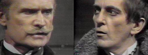 Old House - Judith knocks at the door. A wolf howls. She looks through the window, opens the unlocked door and enters the house. She calls to Barnabas, but there's no response. Is anyone here? she asks. The front door opens--it's Dirk, looking quite the vampire around his eyes. She asks him sternly where he's been--we've been searching everywhere for you for the past two days!--you have some explaining to do! You dismissed me the other day, he reminds her. I don't care what I did, she says, while you're on this property, you're accountable for your actions, which have been very peculiar lately. Peculiar, huh? probes Dirk. What did you tell Jamison that upset him so the other evening? asks Judith. You don't know? asks Dirk. Some outrageous lie about Barnabas, says Judith, but Edward wouldn't give us the details. Oh, Mr. Edward, says Dirk sarcastically, he would spare you the gory details. Just what did you say to Jamison? asks Judith. Dirk says, I'm not sure I should tell you--it might damage the Collins' good name. I know one thing, vows Judith--you aren't going to get an opportunity to damage that name--you have 24 hours to get off the property, and if you don't, the police will handle it. You won't get a chance to do that, says Dirk--a lot of things have changed in the last few days, MISS JUDITH, and they're going to change even more, vows Dirk, in just a minute. I don't have time to listen to anymore of his nonsense, says Judith, moving to leave. Dirk grabs her and says, you'll listen! "How dare you?" she demands--get out of my way. "You don't boss me around anymore," says Dirk. Don't tell me what I can and can't do! orders Judith--you will obey! "You're wrong!" he says--sometimes people change their roles in life, and you have been a mistress so long, you don't know what it's like to be a servant. He advances on her. "Dirk," she says warningly, backing away--"Stay away from me." We are going to change roles, says Dirk--oh, yes--I am going to become the master, and you the servant! Let me leave, demands Judith, I don't mean what I said about the police, you can take whatever time you need to leave Collinwood.