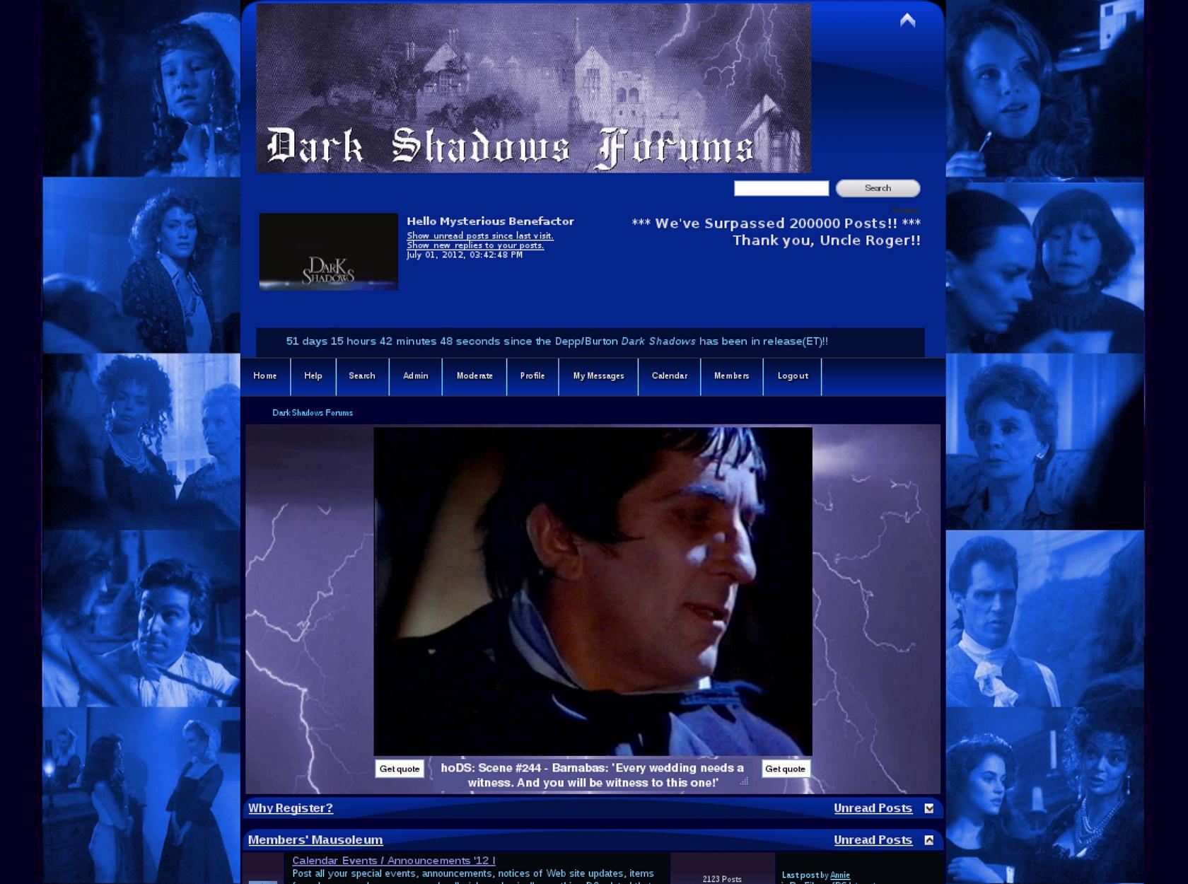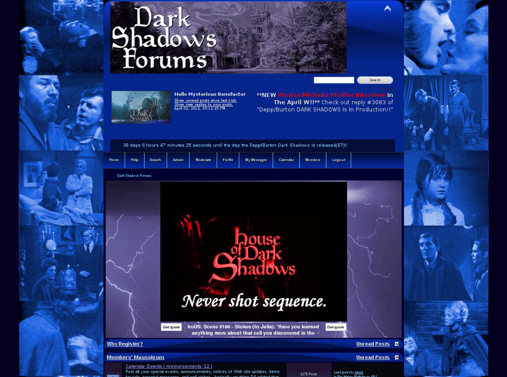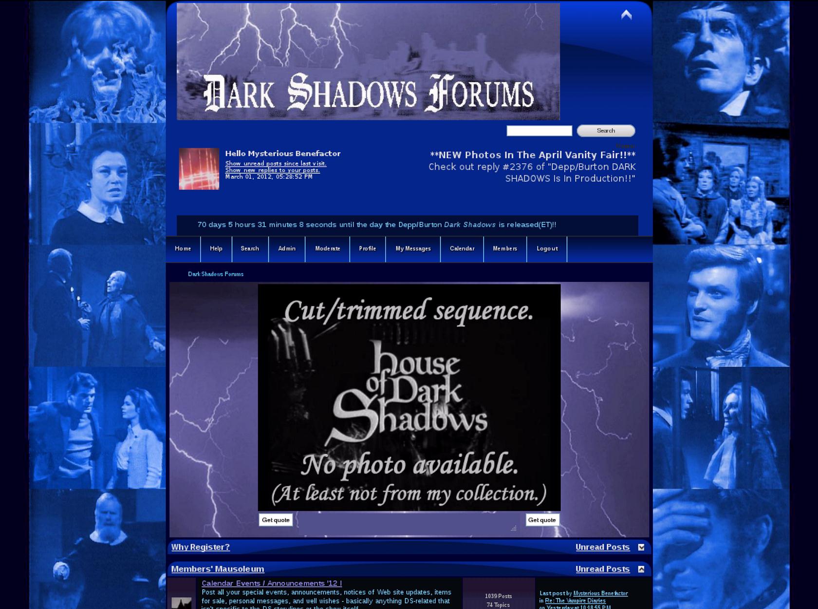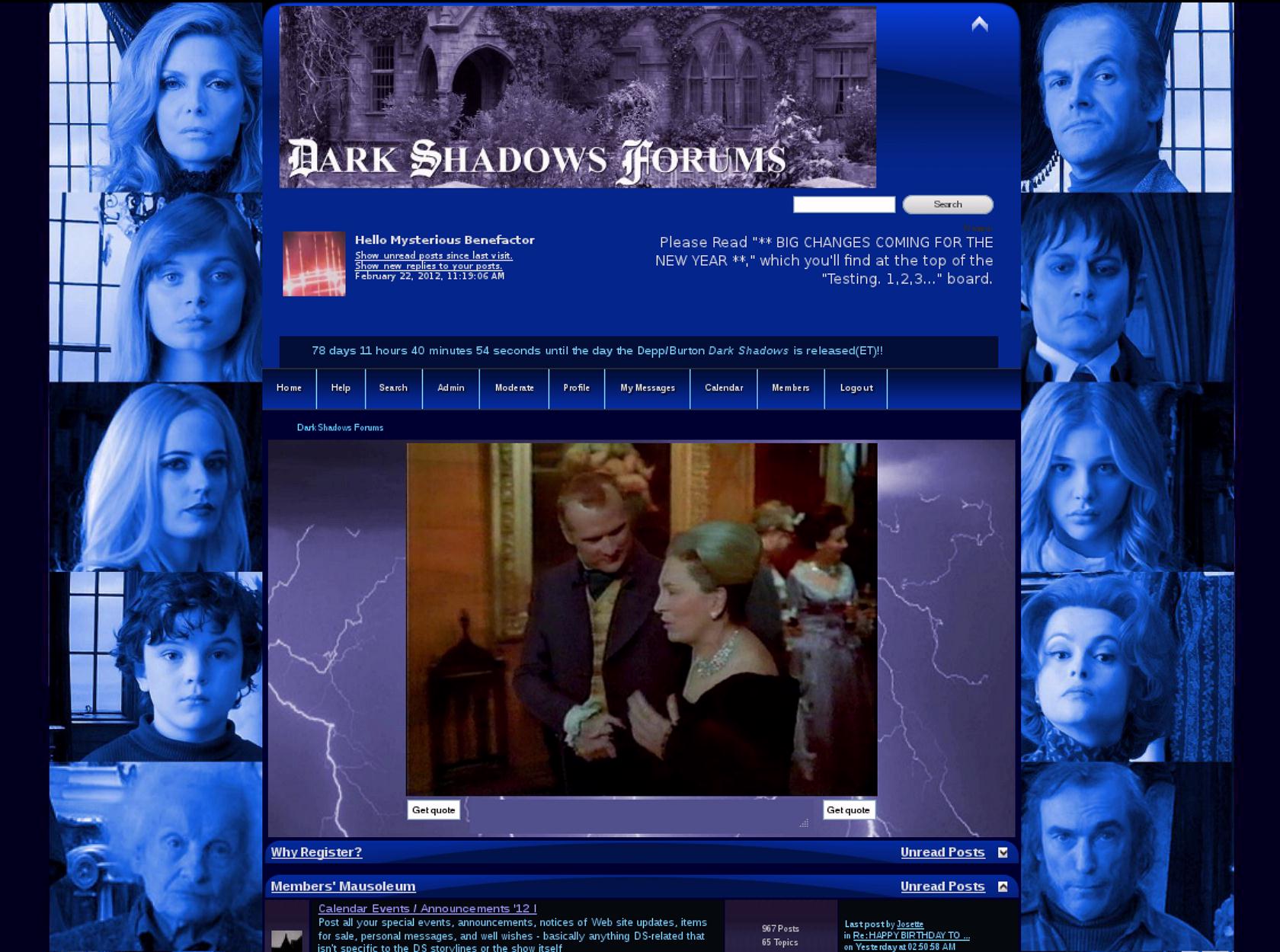 It wasn't really just for January because what I was alluding to is the forum logo/background for the Depp/DS film. Back then I was working on the forum logo, and I liked how it was turning out, but I was simply taking the fonts from the sign on Frid's dressing room door, the wrap party ticket, and the film crews' hoodies. They certainly make it seem as if the same fonts that were used for the original show will be used for the film - but once they began developing the posters (which one can only hope they are doing) who knows if that's what they'll go with or decide to go in a different direction. And I was also hoping to possibly get a better image of Collinwood to work with (rather than the fan photos which only provide the limited view of the outdoor set) and to possibly also get some screen captures from a trailer for the background. But as no poster/trailer has been forthcoming and probably won't be for possibly close to a month or more, I decided to give up waiting and to work with what we do have. After all, no one says I can't do another forum logo/background for the film somewhere down the road.  [snow_wink]