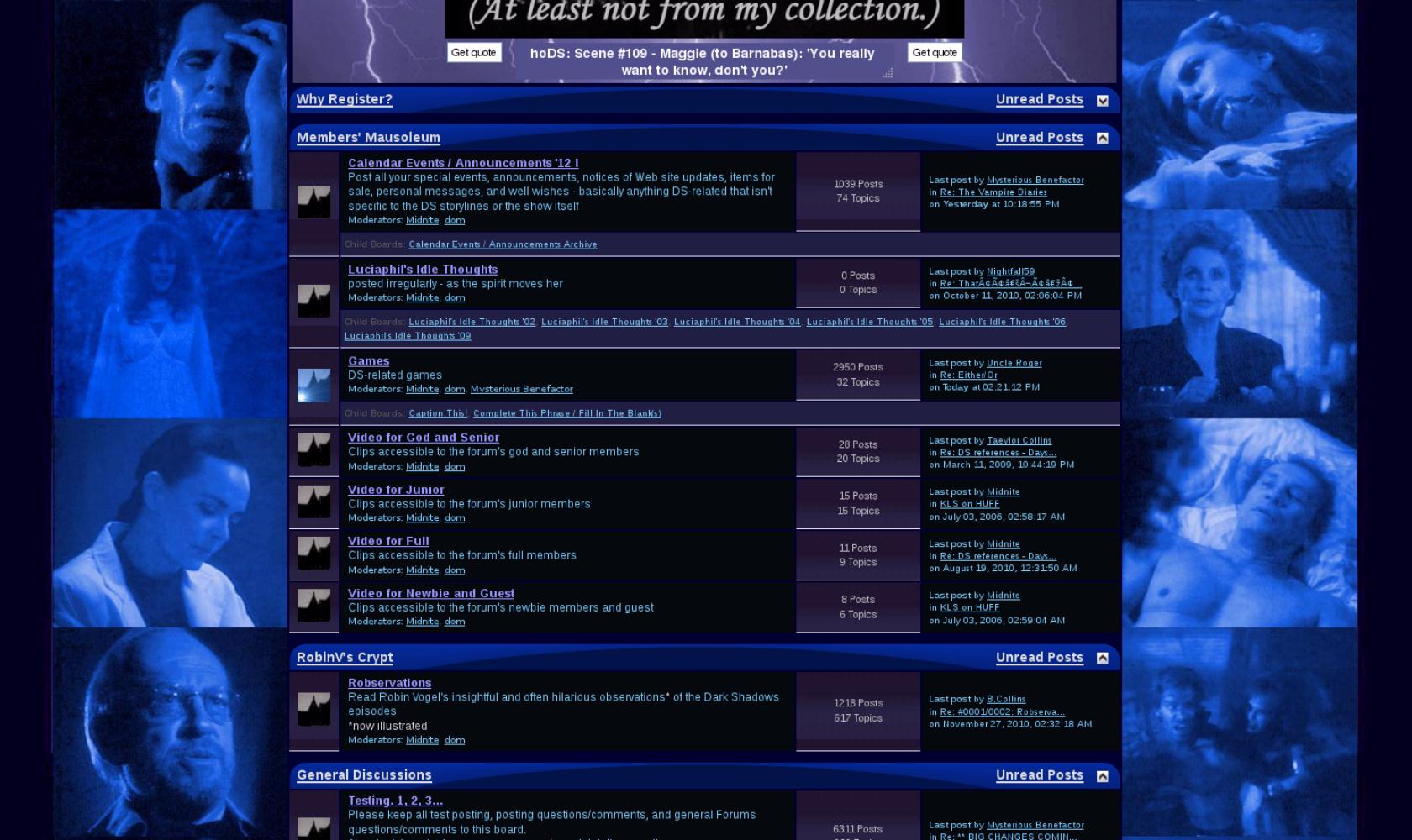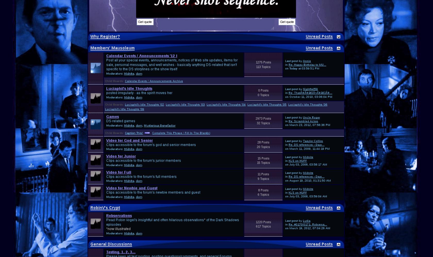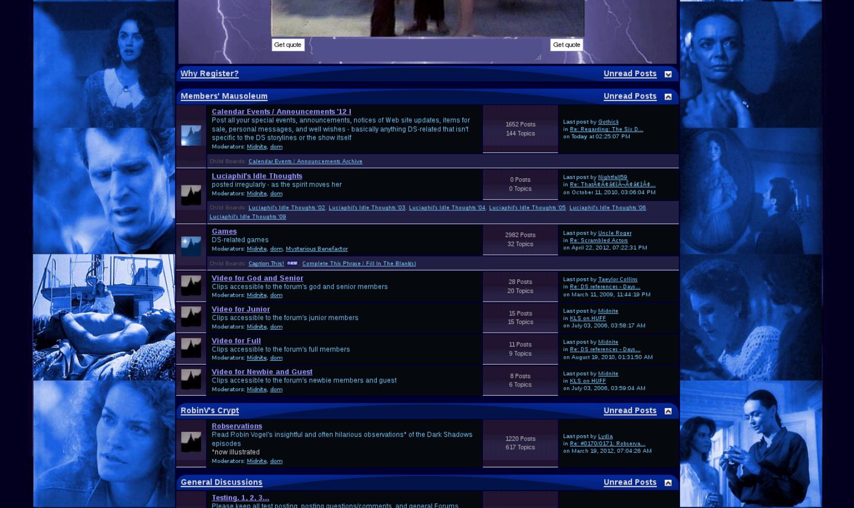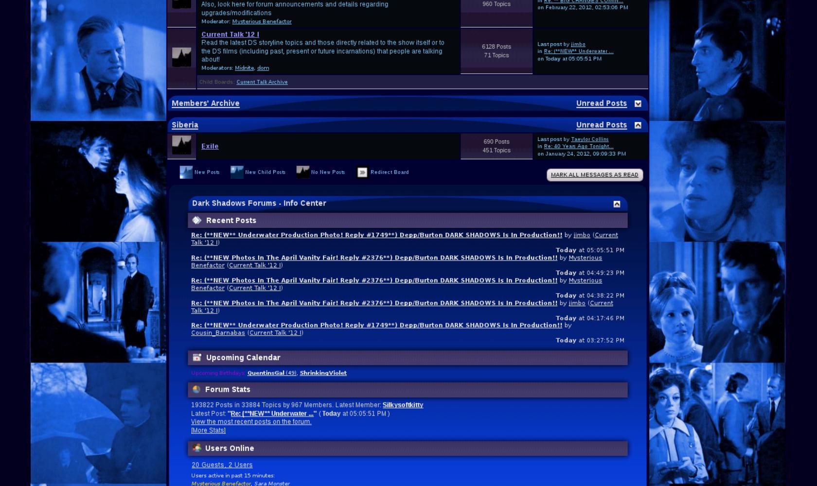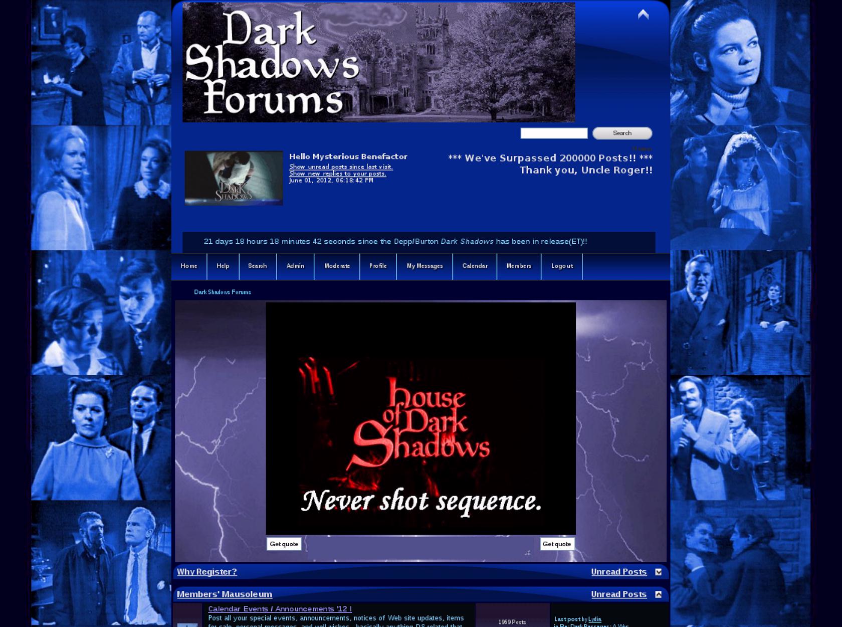 It wasn't really just for January because what I was alluding to is the forum logo/background for the Depp/DS film. Back then I was working on the forum logo, and I liked how it was turning out, but I was simply taking the fonts from the sign on Frid's dressing room door, the wrap party ticket, and the film crews' hoodies. They certainly make it seem as if the same fonts that were used for the original show will be used for the film - but once they began developing the posters (which one can only hope they are doing) who knows if that's what they'll go with or decide to go in a different direction. And I was also hoping to possibly get a better image of Collinwood to work with (rather than the fan photos which only provide the limited view of the outdoor set) and to possibly also get some screen captures from a trailer for the background. But as no poster/trailer has been forthcoming and probably won't be for possibly close to a month or more, I decided to give up waiting and to work with what we do have. After all, no one says I can't do another forum logo/background for the film somewhere down the road.  [snow_wink]