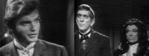 NOTES: Other soaps seems pretty humdrum compared to DS. Imagine, a pendulum threatening one of the heroes! Did it get any better than this? I read that both Selby and Stroka couldn't remember their lines and there was no room for the TelePrompTer in that small space, so they ad-libbed their lines--and the scene turned out perfect, time-wise. Both Barnabas and Quentin accuse Angelique of being "human," and she really did seem so today. Robbed of her powers by the medallion, she had to turn this one over to Barnabas--yet Aristede wasn't taken in by him. I guess Aristede doesn't know Barnabas is a vampire, and that he can get to places much faster than a mortal man. Gripping episode--when this one began, and we saw that Quentin was destined to be sliced in that very sensitive spot, didn't you want to go ouch, guys? What has happened to Julianka, who seems to be Quentin's last hope for beating the curse?