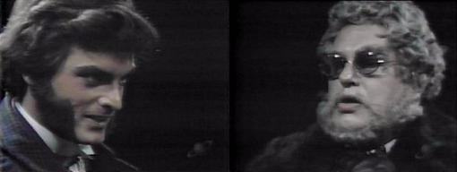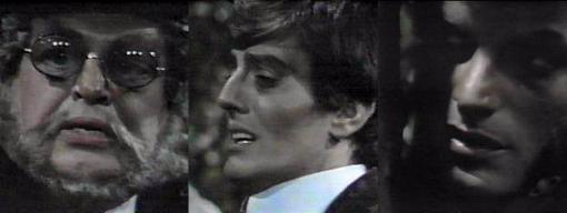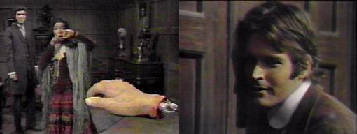 5 AM - Barnabas looks at the clock and asks Quentin, are you sure there's a connection between Fenn-Gibbons and Aristede? Positive, says Q; what it is, I don't know. That doesn't interest me, but why Victor refuses to admit knowing Aristede does, says Barnabas.--they both want the hand, that's obvious. Magda enters. Quentin tells her, I'm sorry about Sandor. Barnabas asks, has something else happened? "It's over," she says--"No one else will die." Oh, no, says Barnabas. Quentin asks, what's this all about? Don't ask me anything, says Barnabas. Why not--is someone else going to die? asks Quentin--"It has something to do with me, doesn't it?" He appeals to Magda, who asks Barnabas, "What does it matter?" "Quentin, your son is dead," she says. (no preamble there, my God!) "So it has happened," says Barnabas sadly. What does this means--I have no son, says Quentin--what is Magda talking about?