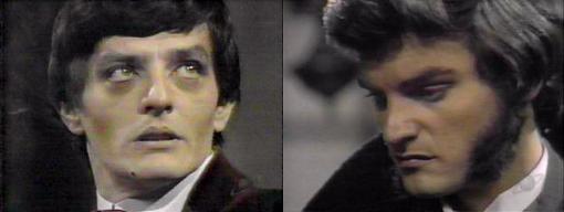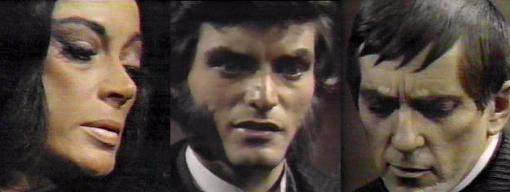 798 - (Back in color, Selby does the intro) - This is my fate, laments Magda--I can't run away--you couldn't run from my fate, so there's no point in trying. Resolutely, she goes to answer the door. Barnabas watches, miserable. Sandor is at the door, his eyes huge. Magda laces into him--did you find another girl?--I'll give you what-for, I swear!--look at him, Barnabas, doesn't he have shame all over his face? Sandor only mutters "Magda." She continues to chastise him for not having anymore money. "I come home," says Sandor haltingly. You bet--look at him, says Magda disdainfully. Barnabas senses something is terribly wrong as Sandor walk-staggers into the house. Should I forgive him everything without a word? Magda asks Barnabas--"Tell me what bad things you've been doing." "I seen Julianka, Magda," he says. Magda crosses herself. "When?" she asks--Julianka is dead. Yes, says Sandor, turning, exposing to Barnabas a knife buried in his back.