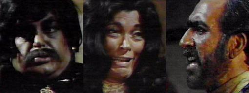 I've waited for this moment a long, long time Johnny tells Petofi.   The latter, sitting in a chair, suggests, you have waited TOO long--think of yourself instead, what you could gain if you let me go--you're sensible, we both are, there must be some arrangement we could make--I could give you things beyond your expectations, beyond your dreams!  What I want, I'm going to take, says Johnny--right now--I don't need any arrangement to do it--"Nine sacred candles, all burning."  We see nine candles lit before him.  "All ready!"  He pulls out the sword.  "Mateo, Zarco, all you of the Romano tribe who bore the honor and the glory and the power to stand up against our hated enemy, wherever you are, see this moment and make it your triumph, too.  King Johnny Romana, of all the men of his tribe, has found Petofi!--King Johnny Romana alone is going to do what must be done!"  He takes the scimitar and walks over to the terrified Petofi, whose arm rests on the chair's armrest.  Petofi's eyes widen to the size of robin's eggs as, overcome with terror, he watches King Johnny raise the scimitar high above his hand!