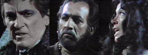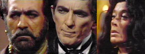 You think King Johnny is a fool? asks the gypsy--do you think I'd leave this room with my pockets stuffed with diamonds, and that hand still with you, roaming the same earth as the gypsies?--I wouldn't give up that hand for all the treasure in the world.  But we won't be roaming the same earth, says Petofi--I have a friend with exceptional powers, to a time almost 75 years from now--with that much distance between us, we will never meet again--it will all be over between Petofi and the gypsies when Barnabas Collins takes me to the future!  Johnny laughs--Barnabas Collins isn't your friend, nor is he taking you to the future--he told me where I could find you, and the hand.  Petofi, sits down, cradling his hand, and asks, what are you going to do?  You know, says Johnny--what was done to you 100 years ago.  "Take. . .my hand," says Petofi in a sickened voice--is there no hope, no mercy? he cries.  The same mercy you showed slaughtered gypsies in the Forest of Oshden, says Johnny--the same mercy you showed any gypsy unfortunate enough to cross your path--that is the mercy I will show you!  Then there's nothing more to be said, says Petofi.  Only this, says Johnny, drawing out the scimitar.  "How the knife gleamed when it came close to my hand," says Petofi--"The agony as it was severed from my wrist!--it was 100 years ago and I still remember!--I don't want to remember!"  This time you won't have to remember for long, says Johnny--"I am going to cut off your hand, Count Petofi, it will happen like it did 100 years ago."--there will be one difference--after I've taken the hand, I'm going to take your life, and there's no way you can stop me.  Petofi stares at him, totally fear-stricken and seemingly helpless for the first time.