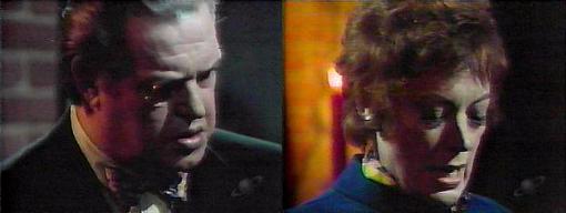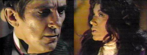 Charity is mad, says Barnabas. I found truth in her madness, says Magda. (Is that the way to find truth, to go nuts?) You yourself say Pansy Faye had the sight, Magda reminds him--she said the murderer was in the room that night at the Old House. (Barnabas looks ashamed). Yes, he agrees, she did. It's true that Pansy has possessed Charity, and you have six days to do something, says the gypsy. How does he die? asks Barnabas. He was shot, says Magda. Who did it--does Charity know? he asks. No, says Magda, in her vision, he was dead in the tower. Why was this room sealed if he died in the tower? Asks Barnabas. I don't know, says Magda, but Charity did say the tower--you must take Quentin away! Death runs faster than any man, says Barn--the three things that were to happen before Quentin died--the third, that he would be rejected by the one person he loves, hasn't happened yet, and must not--if we can stop Jamison from rejecting Quentin. . .but first we must find out who is going to kill him. How? She asks. I'll have to do it, says Barnabas--find the I-Ching wands, which must be here, since they belonged to Quentin in 1969. Magda is perplexed. I'm going to need you, he says, we must learn who killed him originally, by going to the present and speaking with Quentin's ghost there. Magda calls this idea crazy. No, says Barn, only the ghost of Quentin can tell me. If you go and speaks with the ghost, asks Magda, how will you get back here? Barnabas lights some candles. I got here before, I'll get back again, promises Barnabas. It's taking too big a chance, says Magda. If Quentin dies on the 10th of September, then history won't have been changed, and his ghost will surely claim David, declares Barnabas somberly. "I must stop his death, Magda, and will take any chance to do it!" We must find the I-Ching wands, he says, taking the candelabra and to search Quentin's desk.