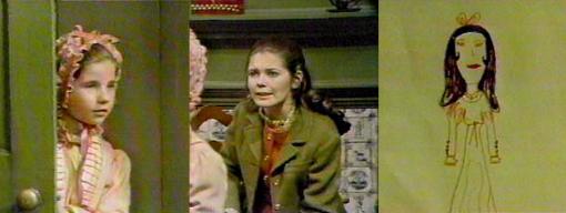 Vicki isn't alone long. Sarah sneaks in to visit her, asking her not to tell on her for not taking her nap. Although Vicki insists she isn't Sarah's governess, Sarah says she is--she drew a picture of her.