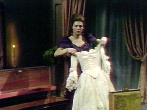 Kitty on the series, wearing one of Josette's dresses:
