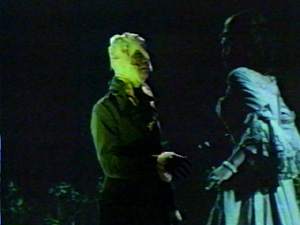 Well, a check of a great HoDS website reveals that the dress Kitty was wearing when she met up with Jeremiah's ghost *wasn't* the same one Maggie wore at the end of HoDS for her aborted 'wedding' to Barnabas.  But it appears that it *may* have been the same dress Ms. Evans wore to the Collinwood costume party earlier in the movie.  The wedding dress is an empire-waisted early 1800's gown, while the party dress is more 1780's/early 1790's - longer waisted - like Naomi used to wear on the show.