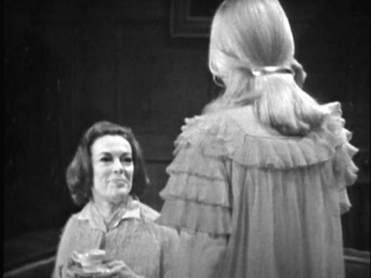 Julia is now an officially established houseguest at Collinwood. While Carolyn goes to the kitchen for coffee, Julia quizzes Vicki on Barnabas. Vicki plays the music box and praises the music's "tinkling" quality. Once again, Julia is instantly alert. But Vicki departs in a huff when Julia insinuates that Barnabas is trying to recreate Josette.