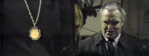 Funny blooper with the turned-over locket. They should have pinned it to Megan's blouse, then it wouldn't have turned over that way. Stokes should have tried hiding himself better; he isn't a good detective of he couldn't stay hidden better than that and they spotted him across the street!