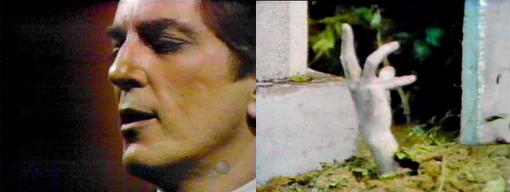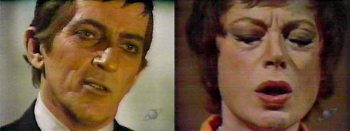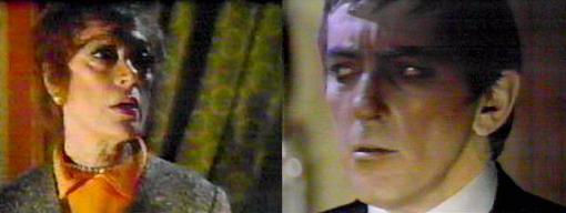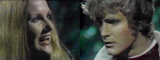 There's no adequate way to describe it, Julia, says Barnabas--it resembles nothing that has never been seen before, but it hideously ugly and evil; I don't even now understand the nature of its power, only that it paralyzes the human will. There must be some way it can be destroyed, insists Julia. If there is, I haven't found it, says Barnabas--in its latest manifestation, Jeb Hawkes is arrogant, ruthless and cruel, and will stop at nothing to get what he wants--he has resisted my control, and I can't fight them because of the power they have over him. Is it possible they lied to you about holding Josette hostage? asks Julia. Yes, answers Barnabas, but that other threat is no lie--I tried to defy them once, when Michael wanted to destroy you (she reacts, of course, with consternation)--I refused, they made me a vampire for one terrifying night, just to remind me of all the horrors I'd once suffered, to warn me I'd stay that way if I didn't follow orders. "You obviously haven't followed orders," says Julia with a tinge of humor, "I'm still alive."  I found out later that killing is forbidden by the writings of their book, says Barn--but Jeb ignores the book, since he killed Paul, no one is safe. How do they plan to deal with people against them? asks Julia. They have the power to induce dreams that will compel people to adopt their way of thinking, explains Barnabas, however, not everyone is susceptible--you were one of the exceptions--but not Elizabeth, David, or Amy (here Julia reacts with surprise). They're part of this, too? she asks. That's why I couldn't speak of it at Collinwood, says Barn, they are part of it, all right, and loyal because they have no real control over their actions, and no knowledge of the consequences of what they are. What are the consequences? asks Julia. The person in the most immediate danger is Carolyn, says Barnabas. This also astonishes Julia--why? Twenty years ago, the Leviathans granted Paul Stoddard wealth and power unlimited, in exchange for his most valuable possession--a few months ago, he realized what that expression meant. Carolyn, whispers Julia. All their activity had been in pursuit of this goal, he says, to recreate the Leviathan race in a ceremony marriage between Jeb and Carolyn--when that ceremony is complete, Carolyn will be completely transformed. Into the same form as that creature in that room? asks Julia, her face screwed up with disgust--Barnabas, you can't let that happen!  I don't know how to stop it, he says--I just don't know--Jeb doesn't understand any rules, he already disposed of the sheriff and Stoddard, now he has plans to do the same to you, Maggie and Amy--he's capable of bringing back to life those he's killed, you see--he can create an army of the dead!