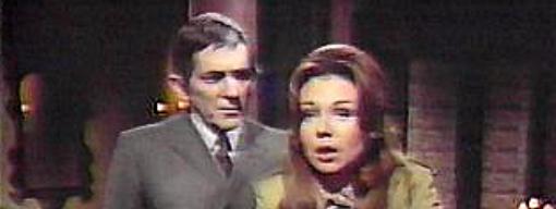 A hysterical Maggie comes to the Old House, where Barnabas sits in a chair, contemplating, most likely, the sad state of his life. I had to come, she says, very upset--I had to see you!  You should have stayed at Windcliff, protests Barnabas, it's not safe here. I had to leave, she wails--I was sitting in my room and felt frightened--Quentin came to mind--something told me he was in danger--and I was the only one who could save him. You're imagining it, suggests Barnabas.  I never felt this way before, says Maggie--when did you last see Quentin? Last night, says Barn. You haven't seen him this evening? she persists. No, replies Barnabas, but I'm sure I could find him and show you he's all right. I've already looked and couldn't find him, frets Maggie.  What do you think has happened to him? asks Barnabas. I don't know, says Maggie, but I'm sure it's terrible, and he has very little time to live--maybe only an hour. She glances down at her hand upon which is etched the pitchfork of love.
