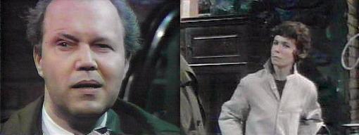 Will adjusts his tie in front a mirror in the drawing room. Carolyn, exhausted, comes in--Sabrina is sleeping, she says, Cyrus is with her, but they didn't catch the guy who attacked her. What's the occasion for your well-dressed man number; you haven't paid this much attention to yourself in years. He checks his nails, combs his hair, and asks, don't you think I look like I did before we got married? I have trouble remembering, she says. Maybe I'm trying to recall the image, he suggests sarcastically. She laughs with equal sarcasm and bitterness, noting, you've just decided, out of the blue, to look respectable again? No, he says, irritated, it so happens I ran into Quentin, who invited me up to meet Angelique's sister. Oh, is that all? she asks--if I'm not mistaken, Alexis is Angelique's twin sister, isn't she? You know perfectly well she is, says Will--and just stop it. Upset, she asks, how can I?--we can't go through this tacky little drama without HER, she's part of it! He pours a drink. It isn't Angelique, it's her sister, says Will through gritted teeth. Her TWIN sister! rants Carolyn--it will be like Babylon revisited, won't it, Will?--you know, you really aren't going about this properly--you should be in the middle of a book, you know what I mean, something she can lure you away from. Well, he says viciously, let's give credit where credit is due, sweetheart, I will be in the middle of a book very soon, thanks to your strange friend down in the coffin, Barnabas Collins! She looks away. At least the companions I pick are human, he gloats. I didn't choose Barnabas, she reminds him, you know that--I was helpless to prevent what happened.