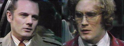 Alexis enters the drawing room--I'm sorry for disturbing you, Quentin, she says, I realize you've been through enough tonight--but that man, Bruno, he's back, here now, in my room. Bruno, standing in the doorway, chortles, it's nice, at least, to hear you refer to it as "your room." I told you you're forbidden to enter this house, Quentin reminds him. I think it's possible Angelique fooled us all at the seance, and didn't die at all. You're stark, raving mad! accuses Quentin. Oh, no, says Bruno, I'm anything but mad, and you know it. If you go on about people returning from the grave, people will begin wondering about you, warns Quentin. Let them wonder, says Bruno--I know what I know, and I'm surprised you don't realize who she really is--but then again, I didn't know her as well as you did, did I? Quentin darts forward, enraged, and grabs Bruno by the shirt front--get out before I have you carried out! shouts Quentin. The master of Collinwood has spoken, says Bruno sarcastically--all right, I'll retire to my cozy little cottage, and live to fight another day. You're living on borrowed time already, says Quentin. That sounds suspiciously like a threat, says Bruno. Interpret it any way you want, invites Quentin, just get out and stay out! Well, we'll meet again, we always do, says Bruno. He bows and says goodnight to Alexis, calling her "my dear." Quentin just about has smoke coming from his nostrils. Alexis gazes at him in consternation.