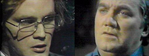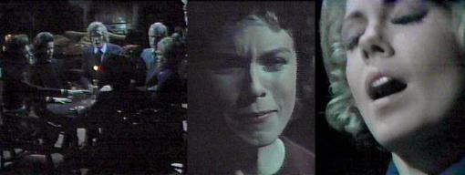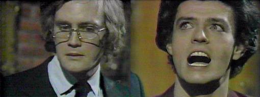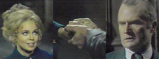 11:30 - Cottage - Cyrus, says Bruno, I'm shocked to get a summons from the great house of Collinwood at this hour--and from you of all people?--does the master of the house know you've requested my presence? No, he doesn't, says Cyrus. I suggest you ask him, says Bruno. Mrs. Stoddard said it would be all right, says Cyrus. Oh, she's back, says Bruno--a lot has happened since she left that she doesn't know about. This is an emergency, says Cyrus--Sabrina is in a state of shock! What did you do to her? asks Bruno. Not a thing, as far as I know, replies the doctor. Why do you look that way if you didn't? demands Bruno--are you covering something up, and badly? No, says Cyrus, looking away, not at all. The more you deny it, the more convinced I am, says Bruno--what did you do to your lovely fiancee? Cyrus, guilty, says she was attacked in her room, and the shock has made her mind retreat to the night of the seance--I had the doctor examine her, and there's nothing physically wrong--I called Dr. Law, the shrink at the hospital, who said if she went through the seance again, Sabrina might be OK. Do you really want to really do it again, asks Bruno--will the same spirit appear again? No, says Cyrus. Will there be that moment of drama, says Bruno, just before... Nobody wants to do it again, says Cyrus. Least of all, me says Bruno, it's a tasteless idea, couldn't be done, ever. I know that, says Cyrus. Angelique was there that night, Bruno reminds him--beautiful, elegant, smiling--it was the happiest I'd ever seen her. Cyrus agrees. She knew Quentin hated her interest in the occult, adds Bruno, but she would never give it up--the lure of the unknown. He begins to play Angelique's theme, shaking his head, adding no, we can never live through that night again, because she isn't with us, and without her, the seance has no end. I know, says Cyrus. The smile on her face, remembers Bruno, her last smile. He plays on--the look in her eyes will never be seen again, he laments. Don't relive it again, advises Cyrus. Why shouldn't I? asks Bruno, at that table, it was the last time her hand touched mine--at that table, Angelique died! Cyrus looks tortured, not knowing what to say, as Bruno plays Angelique's music.