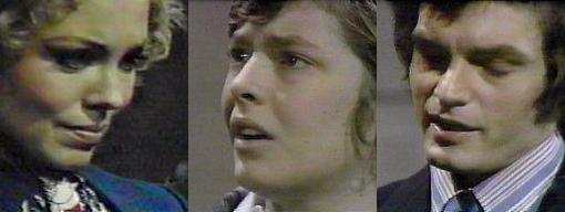 990 - Liz and Roger come downstairs, wondering where Maggie, Quentin and Hoffman can be. It's not like Hoffman to leave the house, says Roger. I'm glad Maggie isn't here, says Liz--I hope Daniel will be more open-minded--do you think he will be? Daniel will always resent his new mother, says Roger. Are you speaking for Daniel or yourself? sniffs Liz. Roger doesn't respond. Liz opens the doors and, startled to see Sabrina sitting there, calls Roger to come in. "I have been sitting here all alone," says Sabrina, "for all of you--isn't it time for the seance to begin?" Liz looks at Roger, puzzled, and he returns an equally perplexed look.