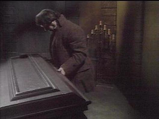 Barn foolishly decides he must see Josette one last time. (Despite the fact that traditional vampires feel neither heat nor cold, he wears his green coachman's cape when he goes visiting.) But as he's standing beside her bed, the door opens and Natalie comes in--utterly shocked to see a man everybody knows is dead. He does his first dematerialization before her astonished eyes. Josette vows to stay at Collinwood no matter what.