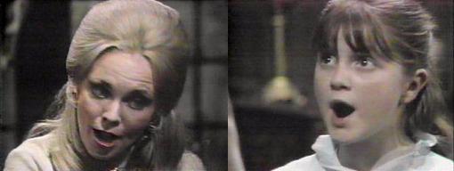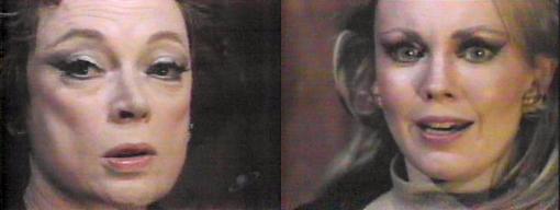 Julia is really being very indiscreet, but having Barnabas hold her hand (if, indeed, that's what happened, my tape of this ep was absolutely terrible, loaded with blue screens that interrupted nearly every scene, so I might have missed some dialogue or even action along the way). It appeared that when she reversed her decision and agreed to help him (and I sensed she did that because she was impressed that he had the cojones to bring the girl to Loomis House in the first place). Besides, she loves the guy, and will ultimately do anything for him. She's killed on his behalf, so what's bringing to life a comatose woman while killing an evil one? I hope I was right and he did grasp her hand; it's not a kiss, but it's some contact! Julia is so right, though, Angelique refuses to entertain the possibility that someone else might have stolen the girl's body, and is homing in on Barnabas. Julia will stand by her man, hair-brained scheme or not! I think both Barnabas and Julia will learn, to their detriment, that Angelique is far more formidable and intelligent, not to mention desperate, than they realize.