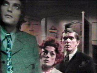 Julia rises from the sofa--what are we going to do? she asks. If we at least knew what was going to happen, we could try to prevent it, he laments. But we don't, she reminds him,  concerned. The first thing we must do is ensure Hallie and David are all right, says Barn. Don't you think we should tell them, just in case they see anything unusual? Elizabeth wouldn't allow that, he says. It's for their own good, she points out. What are we going to tell them? asks Barnabas--that they're going to die and come back as some mysterious ghosts to haunt Collinwood?--we can't do that. Can I hint to them they that might look for something? asks Julia. Of course, says Barnabas, by all means. Julia looks out the window