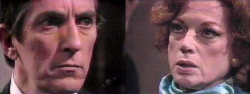 I understand, says Julia. Thank you very much, says Roxanne. They say goodbye. Julia, clearly shaken, hangs up and says, "Roxanne!" The front door opens. A jaunty Barnabas enters--have you had any luck with the records? He asks. No, she says, not yet--I have one more book to go through, but had to stop to take a phone call. The most incredible thing has happened, he says, "Roxanne..." I know, says Julia, I know you found her--she telephoned, she can't have supper with you tonight. Why not, asks the disappointed Barnabas--what did she say? She didn't give any reason, says Julia, and I didn't ask for one. There's a connection between her and Sebastian Shaw, says Barnabas, angry--he found out I wanted to see her and stopped her. You're presuming too much, says Julia. You haven't met her, says Barnabas, she's exactly the same! I assume she is, says Julia coolly, but she isn't the same person. From the few (one) times I've been with her, I know that's Roxanne! insists Barnabas. Tiredly, Julia says, I wonder why I always have to be the one to talk sense, to repeat what you have said to me--Barnabas, do you remember me in parallel time? Of course, says Barnabas. I am not the same person as that Julia Hoffman, she reminds him. That has nothing to do with it! insists Barnabas. It does, says Julia, you do not know this Roxanne. I haven't been wrong very often when it comes to judgment of people, he says. (oh, wow, should we make a list, with Angelique at the top of it?) I agree, says Julia. (God knows why). I KNOW this is Roxanne, says Barn, I know it!