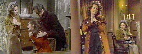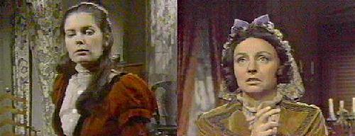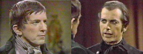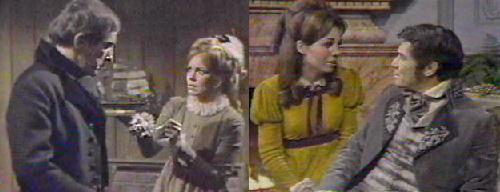 Josette's room - Josette and Jeremiah quarrel about the duel. He has no choice, Jeremiah explains--they broke the rules, and now they have to pay the piper--Barnabas has asked for satisfaction, and this must be done. People can't be brought back to life, she wails. Josette is only too aware of how close Barnabas and Jeremiah were before she came into their lives. No, Jeremiah says, he begged her to elope, they shared some kind of madness--but not love. If she still loves Barnabas, she says, she won't even admit that to herself. Jeremiah tells her that if he lives, they'll have a good life together, and if not...well, she'll be free. She gets very upset at this remark and threatens to go to Barnabas herself to stop it. No, because Barnabas will think him a coward for sending his wife. This is payment due, a little sooner than they expected, but. . .Josette accuses her husband of wanting to sacrifice himself, but he says that's what Barnabas wants. Andre comes in and tells his son-in-law that Barnabas wishes to see him. Jeremiah is reluctant, but Andre says he must--settle it without violence, perhaps, so the men can live without each other's friendship. Jeremiah refuses to go, but Josette begs him to let their lives together be their punishment, not his death (how depressing is that)?