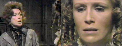 Barnabas appears in Josette's room from the other door.  He stares down at her raptly, and is about to go in for a bite when Julia calls, "Barnabas!"  So, YOU brought her here! he accuses, his eyes vicious.  You must not touch her, insists Julia, please, please try to understand!  "I cannot go through eternity alone, he says, I must have someone."  It's wrong, don't you see? wails Julia, please, leave her alone.  Barnabas advances on Julia and grabs her into his arms.