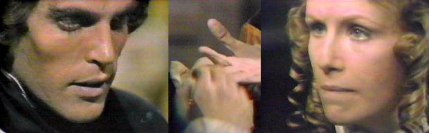 It always struck me as romantic--and odd--when Barnabas kissed Roxanne on the lips, as well as taking blood from her throat.  They always seemed to keep his kisses relegated to the neck, so watching him passionately kiss her mouth surprised and pleased me, giving me a little tingle of anticipation.  While the Roxanne of 1970PT was annoying, this one is fiery, not taking any crap from anyone.  I like that about her, and the instant attraction between her and Barnabas seemed believable, not forced, as in 1970PT when he fell in love with a comatose girl.  Roxanne seems older here, not the child she was in PT, and a better match for Barnabas.  This is definitely heat here, IMHO.