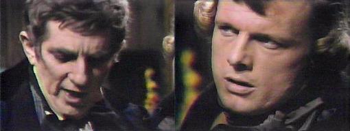 Collinwood drawing room - Barnabas closes the double doors--Ben, he says, Julia told me everything about Quentin and Tad, but she had to go upstairs to look after Roxanne--now Ben, there are some questions I want to ask you. I don't know what's happened to you, says a puzzled Ben--you've changed since that night at the mausoleum--it's like you was a different person. I'll explain all when I have more time, promises Barnabas--tell me everything you know about Gerard Stiles. Not much to tell, says Ben--he puts on the charm a lot, but that don't fool me none, I wouldn't trust him from here to there. But what is he doing here? asks Barn--what do you think he's up to? No good, you can be sure of that, says Ben--I don't know what he wants, but he ain't made a move for it yet, as far as I know. I suppose I'll be meeting him, sooner or later, says Barn, but there's one other thing I want to know about--first of all, I have to meet Daniel Collins as soon as possible. Mr. Daniel is the one person in this house who might recognize you as the original Barnabas Collins, warns Ben. I'm aware of that, says Barn, that's why I must risk seeing him now--ill as he is, I must have Daniel Collins on my side.