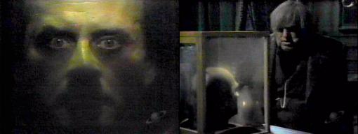 Ben, lantern in one hand, book in the other, enters Rose Cottage, calling to Desmond--where the devil is everybody? A storm rages. He spots the head and removes the cover. Evil, pronounces Ben, Desmond has got to destroy it for all our sakes. Ben sits down and begins to write a letter (left-handed) to Desmond. He folds it up and leaves it on the table, then rises from the chair in horror, dropping the book, staring at the head--the eyes are open, staring malevolently at him!