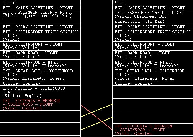 - indicated as "cut, trimmed, or changed"? Well that's because the beginning of this next scene is almost completely different in the pilot from the way it is in the script:
