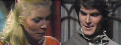 Later, Flora, Trask and Gerard are talking in the Rose Cottage drawing room. Flora, says Gerard, I'm fascinated by your new book about vampirism--you've learned so much about it since last we talked. Fascinating is hardly a word for such an evil being, remarks Trask--Flora, have you found anything in your research that might give us evidence to discover the truth about Roxanne? Actually, I have, says Flora, at least I think so--there was a vampire in Collinsport in 1797. What? asks Gerard. They didn't realize it, explains Flora, but I'm convinced of it--I've gotten the papers of that year, and those attacks are exactly like those suffered by you and poor Julia--began in the winter of 1796 and continued for six months (incorrect as I recall; the entire storyline was only four month). That was during the time my father was here, investigating witchcraft at Collinwood, says Trask. Flora rises from her chair and curtly says, I refuse to discuss witchcraft with you--in fact, I'm surprised you even dared come to this house, knowing how I feel about Quentin. We are united in the common cause to find out who the vampire is, says Gerard. And that's ALL we're united in, says Flora, I want that clearly understood. Dear Flora, says Gerard, who lived here in Collinwood in 1796? Flora thinks it over--let's see, she says--Daniel was a child, Ben Stokes, of course--and Barnabas' father lived at the Old House until he went to England--that same year, I believe. The men pass an "ah-ha!" smile between them. The year your father disappeared, Flora tells Trask, he told the newspapers that the following day, he was going to have an important announcement to make about the attacks. Yes, that was the reason he was never heard from again, says Trask--he was killed before he could reveal what he found. Isn't it a shame, says Flora--if Daniel were alive, I'm sure he could help. Or Ben Stokes, suggests Gerard--he was Barnabas Collins' servant, was he not? Yes, he was, says Flora. Then it is a shame, he could have helped us a great deal, says Gerard.