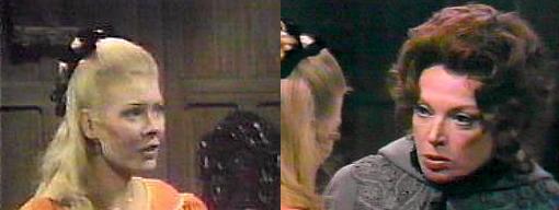10:20 - Collinwood - Julia returns and finds Carrie, depressed, sitting in the drawing room. What are you doing sitting there all alone? asks Julia. I was just thinking, answers Carrie. You shouldn't have such sad thoughts, says Julia lightly. They're not sad, really, says Carrie. Carrie, my dear, says Julia, when a woman has sad thoughts, she shows it--and when another woman sees her, she knows it--I hadn't meant to make that little bit of insight rhyme, but it's true--can I help? It's not very serious, says Carrie--Daphne says I have a way of romanticizing everything, and I guess that's what I'm doing now. Carrie smiles wanly. That looks better than that somber look, teases Julia. Gerard used to have a smile like that, laments Carrie, such a beautiful smile! Is it Gerard? asks Julia. Yes, says Carrie, what's happening to him, Julia, do you know? Is something is happening to him? asks Julia. Yes, she says, I'm not sure if you know what I mean, I'm not sure I do, either, but he's different--he shouted at me today, called me a precocious child--he never shouted at me before. Is it possible you could have provoked him? asks Julia. Yes, says Carrie, I think I did, but still he shouted at me--and I think I had the right to ask him to bring back something that belonged to me--he took it without asking me--people shouldn't do that, should they? Not ordinarily, says Julia, unless it's very important--could it have been very important? No, he didn't have any reason, she says--he said he was taking it to Flora, but he said he looked for me and couldn't find me--and I was here all the time--I don't understand why he's doing that. What did Gerard take? asks Julia My grandfather's diary, reveals Carrie--he and Mr. Trask were talking about it to me and then without my knowledge they took it--they said they were going to ask me, but they just took it--what's happening?--I want to be happy again!