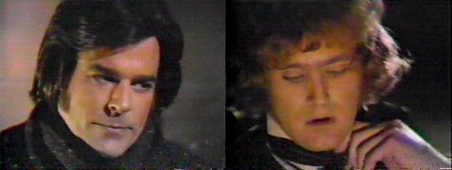 Collinwood - Daphne and Catherine walk downstairs. Catherine, asks Daphne, why do you want me to stay away from Bramwell when you know he needs someone to watch over him until he recovers and you know I'm trained to do it? He can hire someone, insists Catherine--it's not good for you to be in that house--besides, you know it doesn't look proper. Morgan asked you to say these things, didn't he? queries Daphne. All right, yes he did, says Catherine, but I happen to agree with him--Bramwell has caused nothing but trouble since he came here--and it's not going to help matters at all for you to be in that house. You mean, counters Daphne, it's not going to help matters for Morgan?--I know he's your husband, but I would appreciate it if he would kindly stay out of my life--Bramwell's a strange, bitter man, and frankly, I think he's got good reason to be.