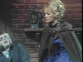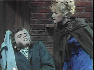 Barnabas should have known the price Angelique would exact for restoring Quentin to life. Only on DS would a character say, "He isn't supposed to die this way!" Angelique says, Quentin will be permitted to go on with his rather sordid existence until the right moment--if you will let me assume my proper position as Mrs. Barnabas Collins. Mrs. Barnabas Collins, Barnabas repeats bitterly, no doubt remembering his first choice. How nice that sounds, Angelique remarks. I won’t force you to introduce me as your wife immediately, she offers. I’ll even let you introduce me as your fiancée for now, the woman you love. Finally she reveals that she revived Quentin the first time too. Barn is surprised although he should have known better about this too.