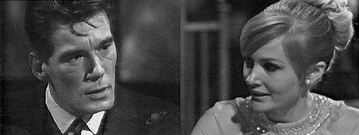 Burke, still chewing, wipes his mouth and asks Carolyn, "How do you feel about going on the town now?" I feel ready for just about anything, says Carolyn. Because when I bring you home tonight, your Uncle Roger isn't going to take it lightly, warns Burke. I don't think we have to worry about Uncle Roger, says Carolyn, moving he drink in circles--he's much more concerned about other things right now--I think he's interested in Vicki, seriously. Burke pops a cigarette into his mouth, but takes it out to ask, "What makes you say that? He wanted to know where she'd gone this afternoon, just because she had some errand in town--he couldn't even wait for her to come home, he went driving off right after her." Burke lights his cigarette. Roger and Vicki, that's an unusual combination, opines Burke. Not so unusual, really, says Carolyn, I guess they're both pretty lonely. So Roger went looking for her, says Burke. Yes, and the gunny thing about it was, she was right there in the house, says Carolyn, they must have just missed each other. Why was he so anxious to see her? asks Burke. You ought to know better than to ask me a question like that, teases Carolyn. Why was he so upset? asks Burke. I thought we were going to forget about Uncle Roger and the rest of the family for the night, she reminds him, annoyed. We are, Burke assures her, I just don't want you to get in trouble when I bring you home tonight--how you say Roger was pursuing little Miss Muffet--Vicki--hm? Yes, laughs Carolyn, and it all had to do with that pen you gave me--the one Uncle Roger lost. What about it? asks Burke, no longer smiling. The minute I mentioned to him that I had told you... Burke interrupts--You mentioned to Roger that Vicki knew he lost the pen?