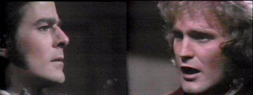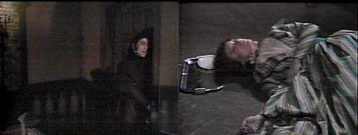 Bramwell gazes out the window of his and Daphne's bedroom. Daphne, dreaming, mutters, in delirium, you have to take me away from here...be happy... He takes her hand--Daphne! he calls. She looks at him, awake now, and says, "You're still here." "I'm not going to leave you, darling," he assures her. I was having a dream about the two of us, she says--we were going away together and start a new life. We will, he promises, as soon as you're better. It was only a dream, no more she says. Don't talk this way, he begs--we will make it work, make it happen, I swear we will! I know how much you mean that, she says, but it's too late, don't you see that? No, he says--tomorrow morning, the doctor will be here from Boston. I think I've lived most of my life on dreams, she says--I'm not like Catherine, not strong, not able to face things as she is--so instead of facing things, I dreamed--only the things I dreamed were just a little beyond my reach, and so I never saw life as it really is. What are you trying to say? he asks. I'm trying to say something I should have realized and said a long time ago--"You see life as Catherine does" (he looks down, ashamed)--"you're so much alike--and that's the reason why you belong together." You mustn't say these things, he insists, rising from the chair and walking to the foot of the bed. I've got to say them, she says, because I never meant anything more in my life--you could never be completely happy with anyone but Catherine--I should have realized that long ago. How can you blame yourself when I'm the one who's guilty? he asks sorrowfully--I cannot let you do this--if I hadn't been so blind and selfish, this never would have happened. (Bingo, Bram.) You mustn't feel that way, says Daphne, it's not your fault!--you've got to think about the future. Daphne, he says, sitting beside her, taking her hand in his, there is no future without you. Yes there will be, she assures him--there will be. No, he says, because I'll never be able to forgive myself for this. You've got nothing to forgive yourself for, she says--you've only got a responsibility to yourself--to make the best possible life you can. Not without you, my darling, he laments, not without you--he kisses her hands. I can't tell you how much I want you and Catherine to find happiness, she says. (guilt meter to the max!)