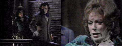 Collinwood - Catherine comes downstairs. Morgan meets her in the foyer. Have you heard about Daphne? she asks. No, he says, I'm joining the search. Noticing she's putting on her cloak, he asks, are you going out? Yes, she says, to the Old House. Nothing anger on his face, she asks, does that disturb you? It surprises me a bit, he admits--I can't understand why you would want to be with Bramwell after what he's done! She gazes at him in stupefaction. (He really is an idiot, isn't he?--don't tell me that wasn't a dreadful thing to say!)