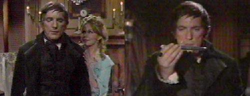 Barnabas painfully tells Ben he overheard Angelique's fire-starting incantation and knew from that point that his wife was the witch. To think that Victoria Winters is in prison while Angelique is free! He asks the shame-faced Ben how he found out, but Ben says he really can't tell him anything--just, whatever Barnabas thinks she did, she probably did. Josette and Jeremiah. . .Barnabas frets over the realization that he killed his uncle and friend thanks to Angelique's love potion; he takes pleasure in the idea that Jeremiah now is haunting his witch-wife. She made Barnabas ill, too, proving she has the power to cure and kill. Ben assures Barnabas grimly that Angelique can make anything happen. Why did she do all this, demands Barnabas. Because she loves you, says Ben. Love? explodes Barnabas--she ruined my family!--no, she did this out of hate, and I'll teach her the meaning of hate! Be very careful, warns Ben, but Barnabas seems far less concerned for his own safety than finding a way to kill Angelique--revenge isn't sweet for Barnabas, but a necessity. Ben offers to do it himself, hide in the woods with a gun and shoot her, but Barn insists he must do it himself--Angelique took his reason for living away, and it's payback time!