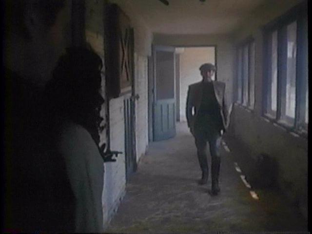 And as for differences, unfortunately for the two horses who are introduced in Scene 145, quite possibly they remained hungry because they're not seen quietly munching hay because they're simply standing in the openings to their stalls - and Vicki actually greats a black and white horse with an unscripted "Hi" as she goes over to it and rubs its nose and then says an unscripted "Hey there" - then she turns her attention to Carolyn with a big smile and a "Hi, Carolyn. Hi" before she takes out the sugar and gives it to Carolyn and then observes "Oh, you like that, don't you? Oh" - and Vicki doesn't actually hear a noise to alert her to Willie's arrival - he quietly appears from around a corner in the stable and she simply turns and is then startled to see him standing there.