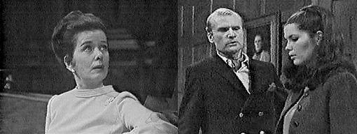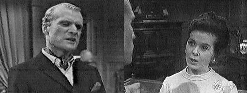 NOTES: Burke kisses Vicki! And unlike the kisses she will share with Burke #2 and Peter Bradford, she looked like she really enjoyed this one. But how it must tangle her emotions and loyalties! You could tell by the way she left how torn she was. She wants to be loyal to the family, but is attracted to Burke, too. And then there's clean-cut Frank Garner, rich, a lawyer, very smitten with her. Does she go for somewhat shady Burke or Eagle Scout Frank? Should be interesting to find out!