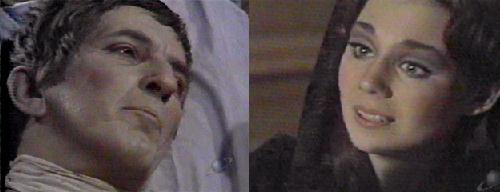 Josette is shocked over what she has read about herself in the book in Vicki's room, but Natalie calls Vicki a devil. Does Barnabas live or die according to the book? wonders Josette, and they continue to read despite being terrified. It says Jeremiah met Josette on a business trip to Martinique, which Josette knows is false. There is no mention of her being engaged to Barnabas. It says the marriage was unhappy, and that Barnabas was attracted to his uncle's wife--which was true. Josette and Natalie realize that some aspects of the book are correct, but. . .the book also says that Barnabas, unable to get over his infatuation with Josette, left for England where he lived long and prospered. Barnabas will live! says Josette joyfully, and reads on. (Don't believe it!!!) The marriage suffered after Barnabas' departure--but Jeremiah is dead, so that one is wrong. The candles blow out by themselves, a sign, says Josette. She doesn't know what to believe, she sobs in her aunt's arms.