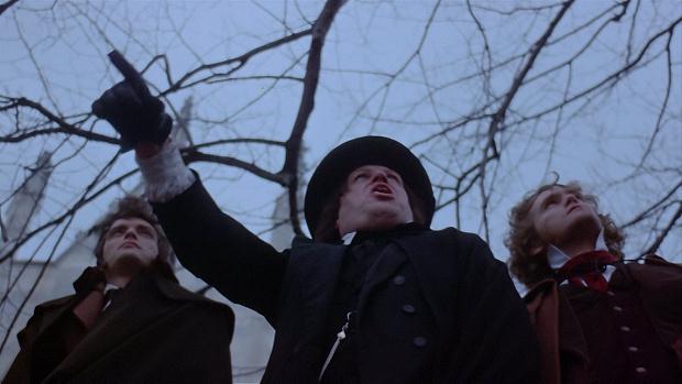 - though in the 94 minute version of the film we do not see Angelique's body jerk to a sudden stop because that is only seen in the 97 minute and 129 minute versions of the film (and more on that in a future post) - and while we do see Sarah scream and run from her window (and also more on that in the future post), we don't see a whip pan or a zoom in to her, but what we do see afterward is a shot Charles having been looking back at her -