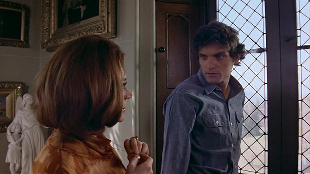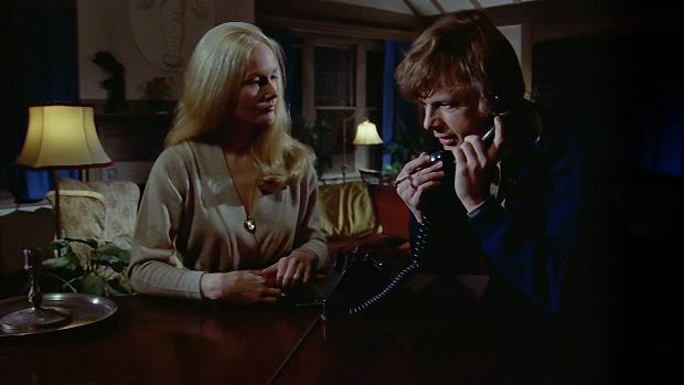 And you might have realized that I'm using the same still for Scene 134 as I did for Scene 116. Obviously the still can't be from both scenes, but I suspect it's actually from neither but is simply a candid shot of David Selby and Kate Jackson, even though the caption for it when in was published in 16 Magazine says otherwise. But no matter, the real reason I've chosen it is that both actors are wearing the same clothes that they wear in Scenes 116 and 134 (how we can know this will become obvious once we get to Scene 135, which is in all versions of the film), so the still can be used as a substitute in each scene until hopefully one day we actually get the restored 129 minute version of the film.