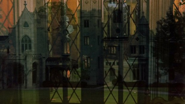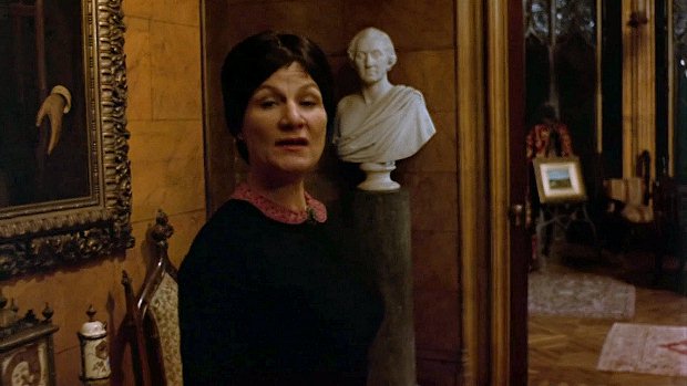 - and then enters the house, looking up at a family (though actually Jay Gould) portrait on the wall of the foyer, Mrs. Johnson begins to move off but then she actually stops and tells him an unscripted -