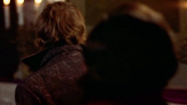 - delivers the last part of his lines that are scripted to take place in Scene 113 before any of Scene 114 happens, and he actually delivers that last line as "I mean, even if she does look like her" - and one thing that's interesting is that DC has a notation that there would be a whip pan from Willie to Carolyn, but quite obviously that isn't how things play in the film because as we can see above and in yesterday's capture, Carolyn simply -