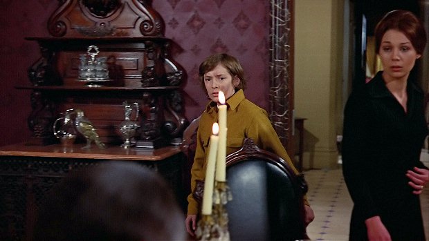 Interesting how Carolyn's shroud was originally referred to as being "transparent" rather than "diaphanous" (or diaphonous, as it is misspelled in the script). Thankfully they didn't go with a transparent shroud - for Nancy Barrett's sake, anyway.  [lghy]  Though as I said, in Blu-ray HD, what she is wearing doesn't exactly leave much to the imagination in certain instances...