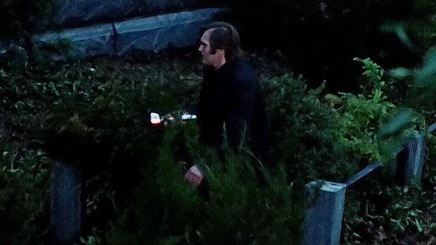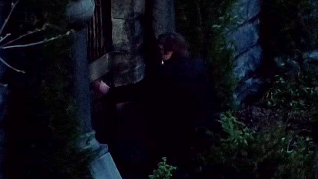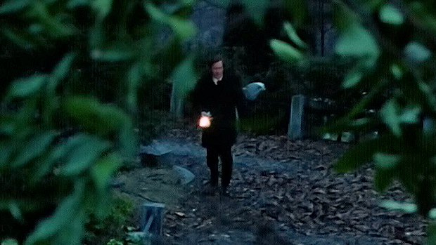 - open the gate and to go inside. After that it's like we're now in Scene 133A. We see the light from Todd's flashlight as it shines on the wall leading down to the inside of the mausoleum -
