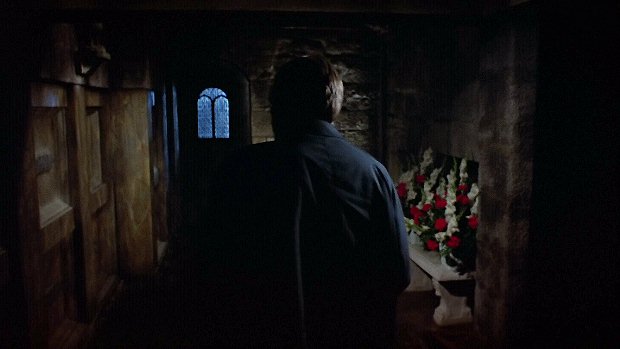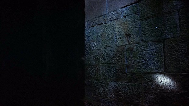 - and then he does indeed make his way to the mausoleum and to shine his flashlight's beam on it -